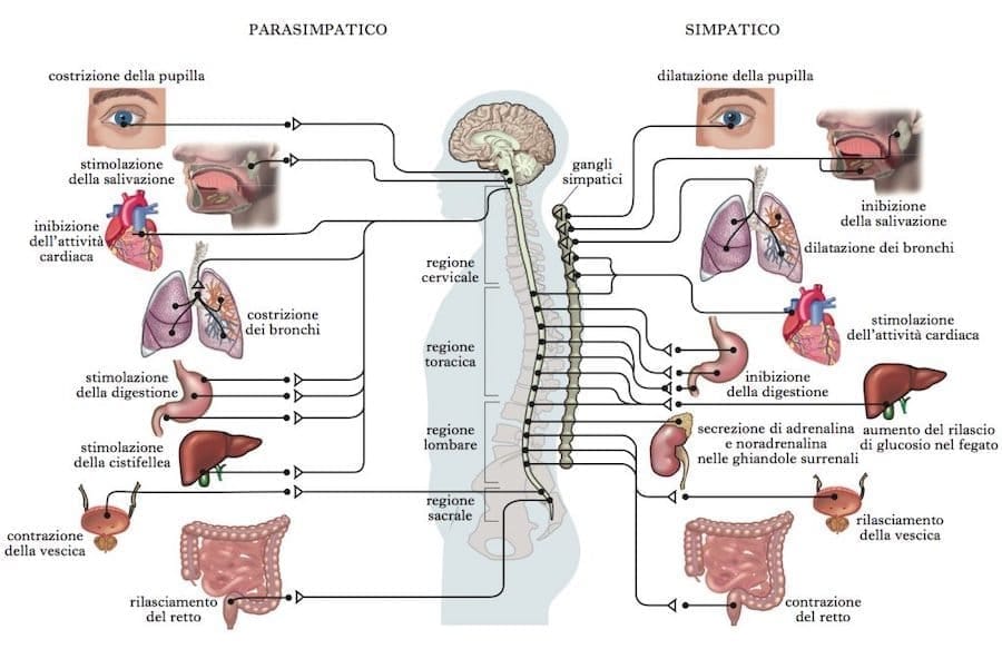 Il sistema parasimpatico ha invece la funzione di freno, di rallentamento: quello che succede finita la corsa e quando andiamo a dormire.